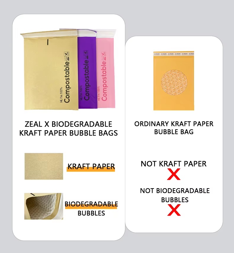 Kot profesionalni proizvajalec papirnatih vrečk Zeal X ponuja popolnoma prilagodljive biorazgradljive pošiljatelje mehurčkov iz kraft papirja, vključno z velikostmi po meri, tiskanjem logotipa in možnostmi teže papirja. Te kompostne poštne pošiljke so 100-odstotno biološko razgradljive, nestrupene in ne onesnažujejo, zaradi česar so idealne za trajnostne strategije pakiranja. Z močno odpornostjo na trganje, lahkim dizajnom in zanesljivo zaščito za hitro dostavo našim pošiljateljem z mehurčki iz kraft papirja zaupajo globalni prodajalci e-trgovine, ki iščejo okolju prijazne rešitve za pošiljanje brez plastike.