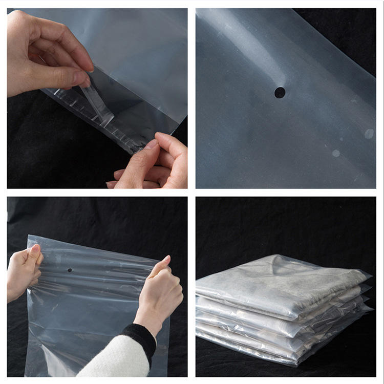 Varnost in skladnost: te vrečke so izdelane iz LDPE, primernega za živila, brez vonja, ne vsebujejo škodljivih ftalatov in so v skladu z globalnimi predpisi o pakiranju oblačil. Njihova lahka narava prav tako pomaga zmanjšati stroške pošiljanja in emisije ogljika.
